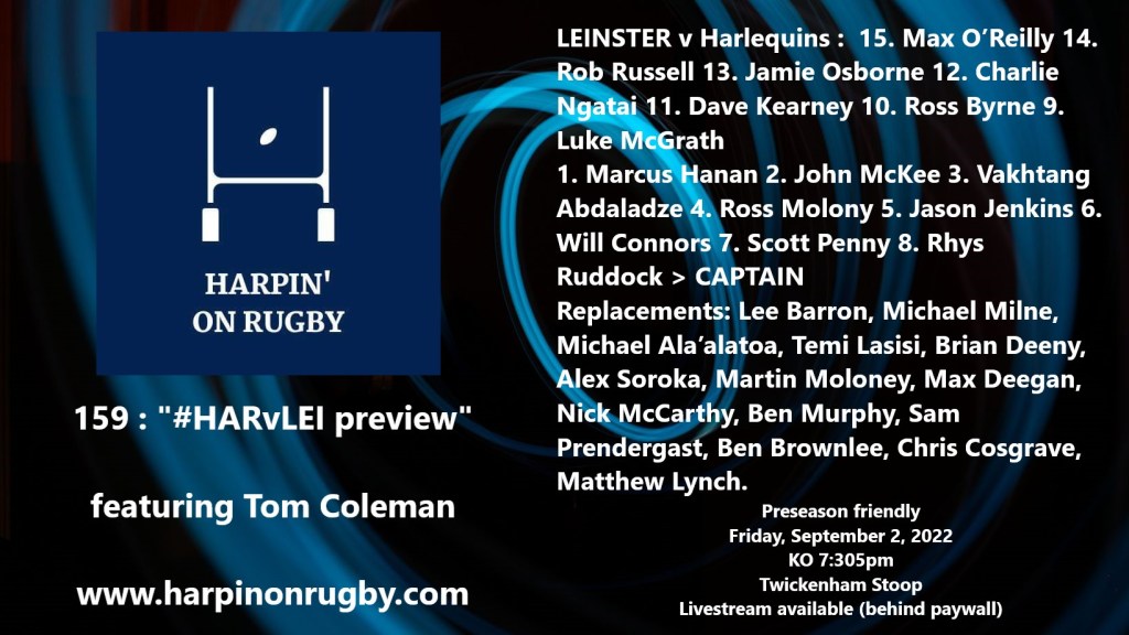 Pod 159 : “Quins v Leinster preview” #HARvLEI Share this: Click to share on Bluesky (Opens in new window) Bluesky Click to share on X (Opens in new window) X Click to share on Facebook (Opens in new window) Facebook Click to share on Mastodon (Opens in new window) Mastodon Like Loading... Related