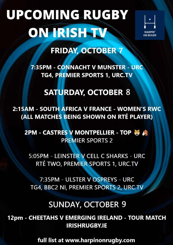 7:35PM – CONNACHT V MUNSTER – URC – TG4, PREMIER SPORTS 1, URC.TV