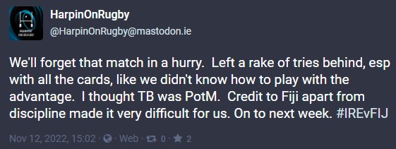 HARPIN’ ON RUGBY MATCH WRAPS ARE BROUGHT TO YOU BY THE IRISH RUGBY STORE