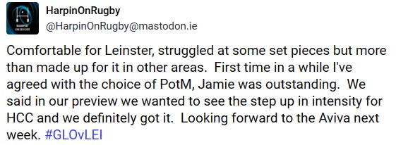 Colin Mehigan @colinmehigan@mas.to @vnvobit @HarpinOnRugby @rugby Lots of impressive performances in Kingsholm today – Jamie Osborne really standing out