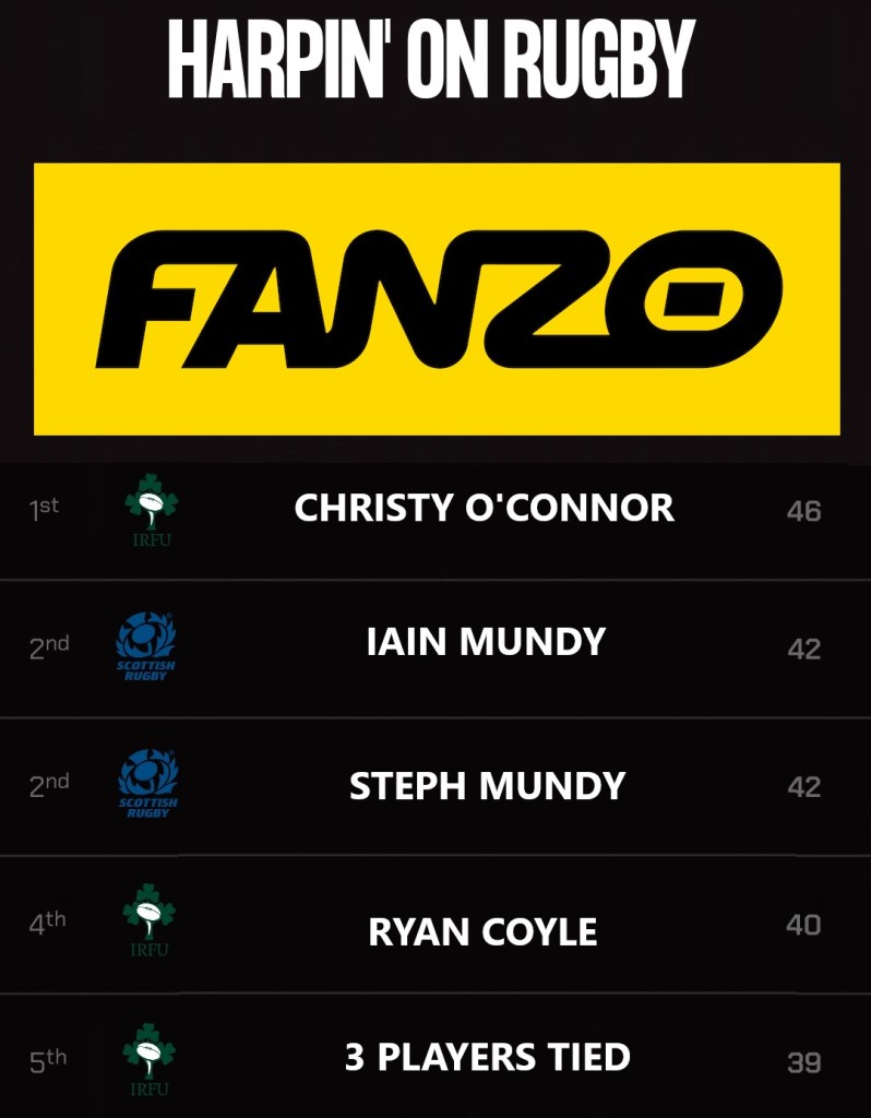 REMEMBER YOU CAN STILL JOIN THE LEAGUE we’re accepting entrants right up to the final round and you can still beat that one round score of 46 (top score overall on the app was 60) and also every Six Nations Match gives you the chance to win a free pint so by all means download the app and enter the league using the code HARPIN and see how you get on.