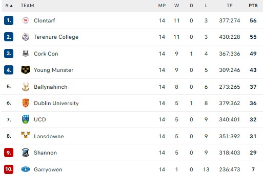 Meanwhile down at the bottom Garryowen finally slipped through the trap door although the race to avoid joining them is really hotting up and for the remainder of the campaign I can’t see there being too many dead rubbers.
