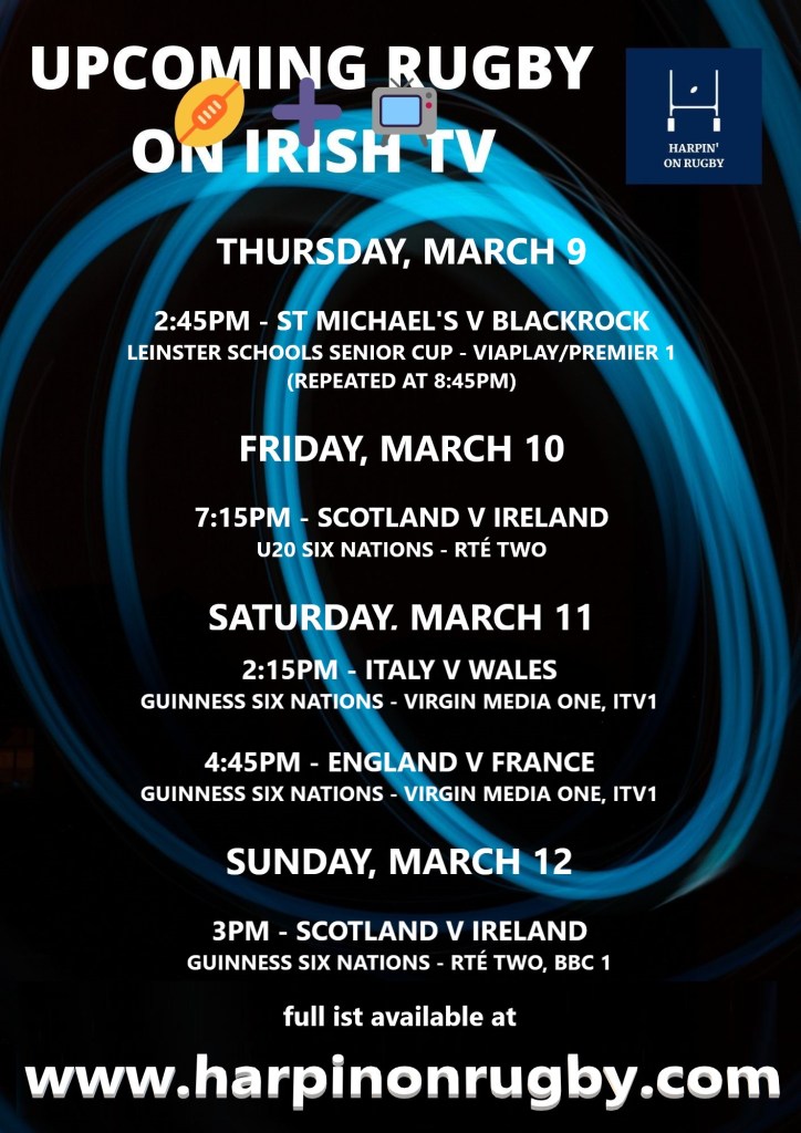 8:45PM – ST MICHAEL’S V BLACKROCK (REPEAT) – LEINSTER SCHOOLS CUP – VIAPLAY/PREMIER 1