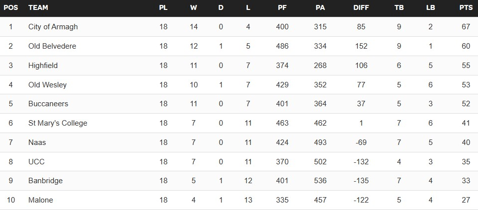 When it comes to relegation I have to offer a correction, as I have been covering the AIL all season I was wrong in how I was explaining the format. The way it actually works all through the divisions is that the 9th team in the higher tier is joined by 2nd, 3rd and 4th in the next one down in a knockout playoff for the one place in the higher division. This means Shannon, Old Wesley, Belvo & Highfield will all have a chance to win two matches and join 1B champs City of Armagh in next season’s Division 1A.