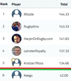 Well. All season 1st place in the HPL has switched back and forth between myself and RugbyKino, only for Mark Jackson to leap over both of us into top spot with just three matches left to predict!!! Like I have always said I’m mostly happy not to be the cellar dweller this season (that honour was clinched by Keego literally months ago) but still to have come so close it’s a bit of a pain to drop to 3rd towards the end. My biggest errors recently were forgetting one match altogether in the last round, and not believing in Munster wanting victory more than Glasgow in this one.