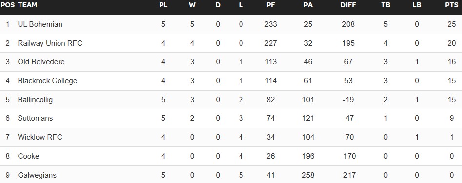 Meanwhile in the men’s Div1A, Lansdowne will be hoping to keep their maximum points record going but certainly won’t have it easy away to Cork Con, who are fresh from toppline the reigning champions in round 3. As for Nure themselves, they’ll surely be looking to come away from Belfield Bowl with some points to get them away from just above the relegation places.
