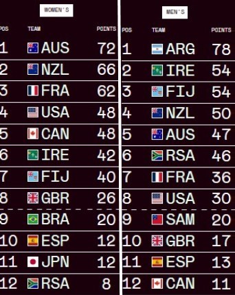 Obviously winning one leg in a series offers no guarantees of a repeat in the next one, but after defeating South Africa, we were done over by both Brazil and New Zealand and it wasn’t enough for a quarterfinal spot. Still, once in that position you can only aim to finish as high as you can and with wins over GB and Japan the girls did just that leaving them 9th. On the overall table it doesn’t look like we can aim much higher than 4th with AUS, NZL & FRA leading the way.