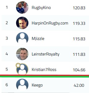 The URC is back for the next couple of weekends with 6 of the remaining 7 matches being played which means the title could be won or lost before the final. As you can see Kino went back ahead in Rd 18 and we certainly can’t rule out Mark Jackson from contention either, will be very interesting to see how the quarterfinals pan out.