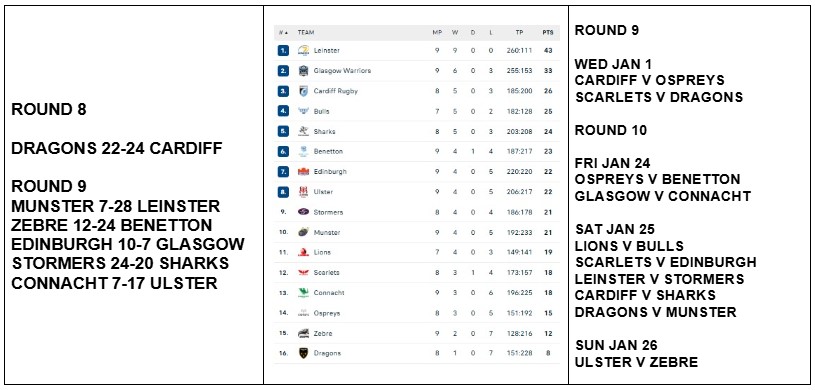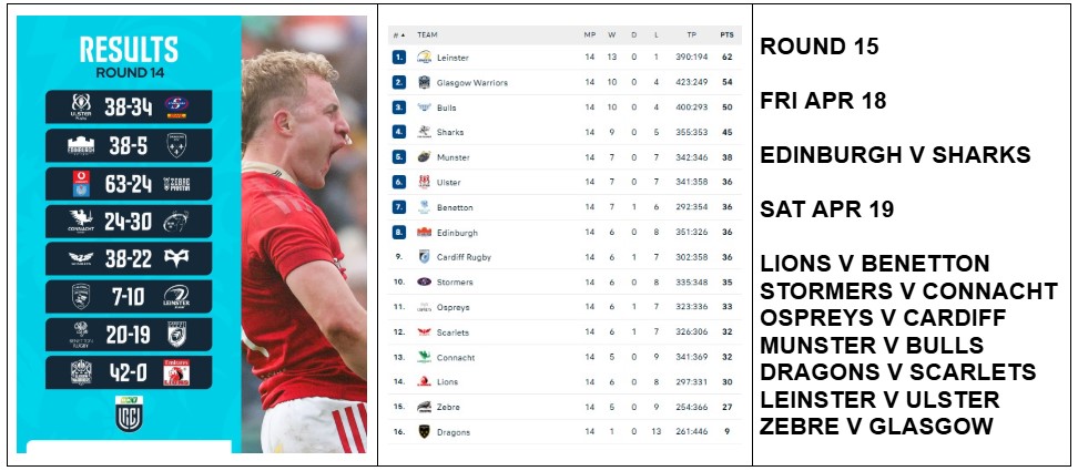 CORRECTION – On the pod I say Leinster’s lead in the URC is 12 points, I’m more than happy to update that it is actually 13! Apologies for the error.