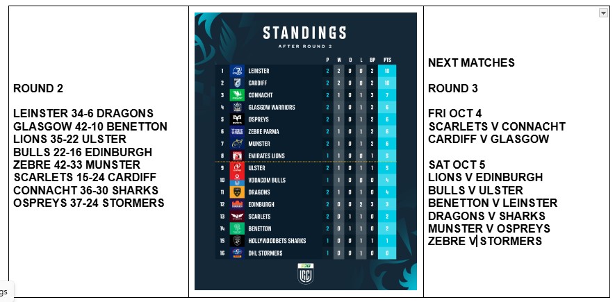 LEINSTER : 15. Jimmy O’Brien 14. Joshua Kenny 13. Hugh Cooney 12. Ciarán Frawley 11. Jordan Larmour 10. Harry Byrne 9. Fintan Gunne