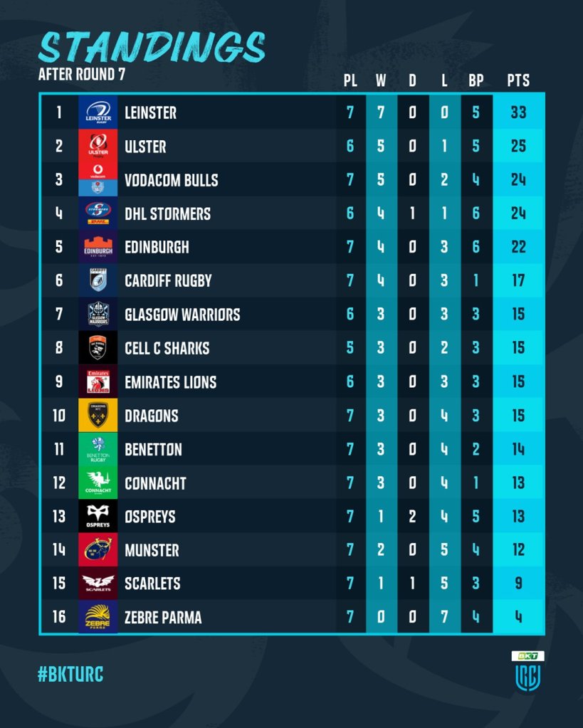Anyway back to the actual rugby, it’s hard to believe that the opening block of seven URC rounds is already in the record books, and when your team has won all of them opening a gap at the top of the table I can certainly have no complaints! Plenty of rugby to be played this season of course but this definitely lays a lot of groundwork for our quest for a good playoff draw.