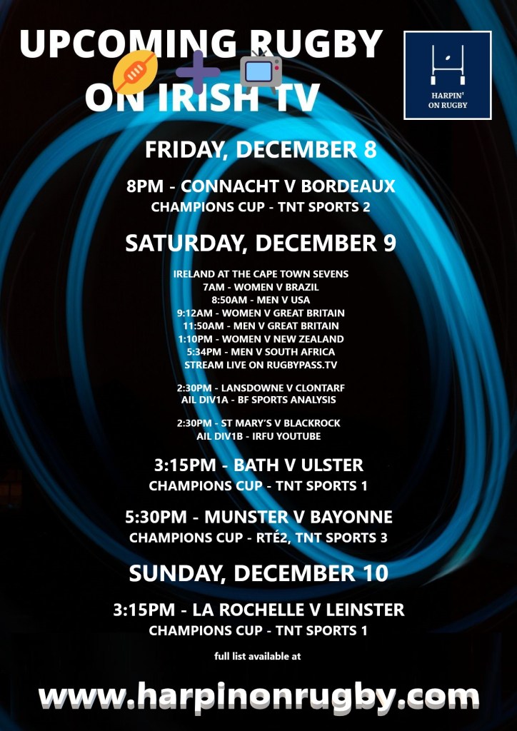 UPCOMING RUGBY ON IRISH TV