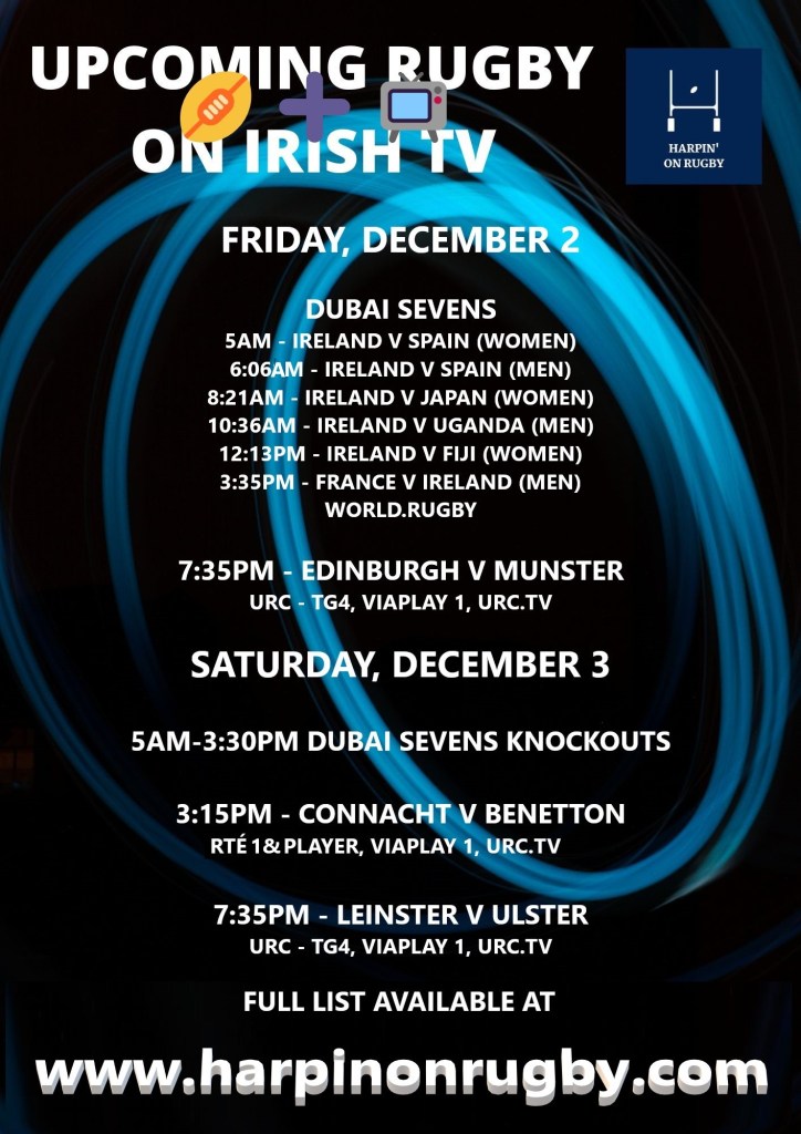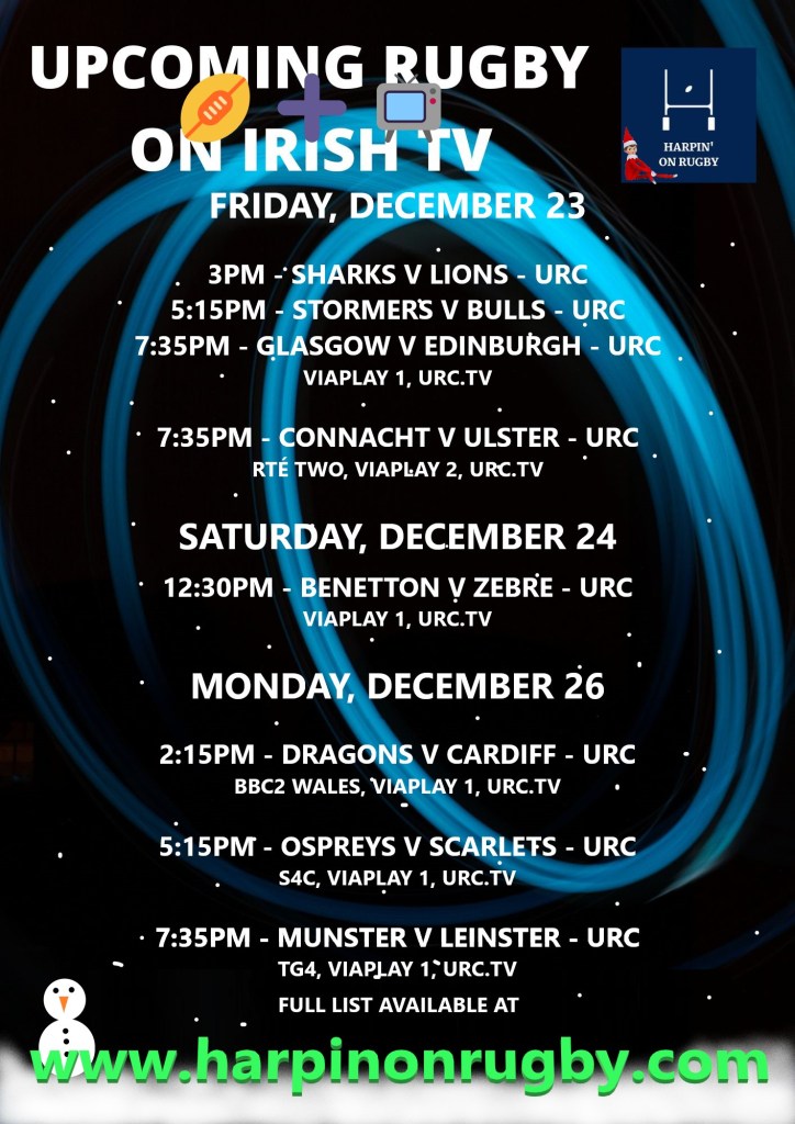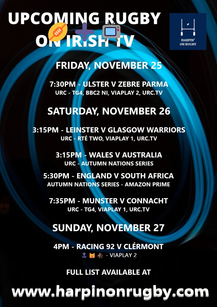 7:35PM – CONNACHT V ULSTER – URC – RTÉ TWO, VIAPLAY 2